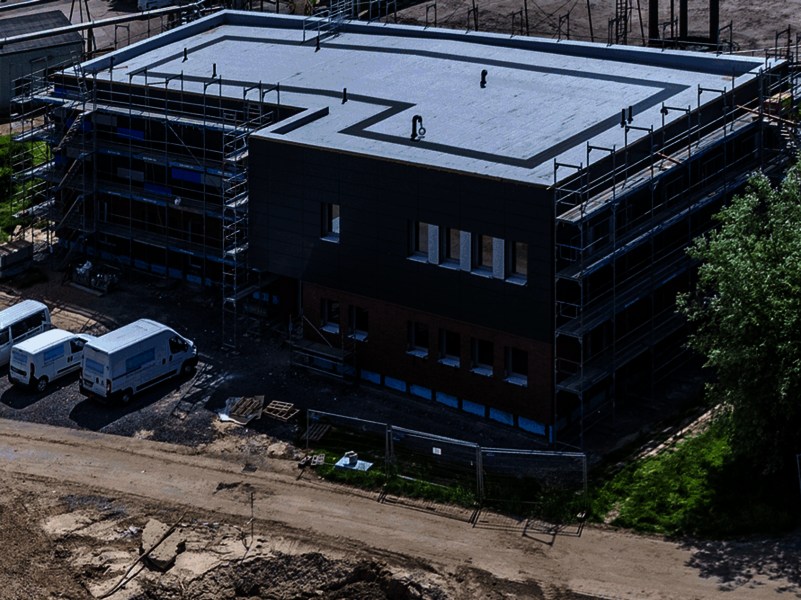 Der Innenausbau des neuen Betriebsgebäudes ist in vollem Gange